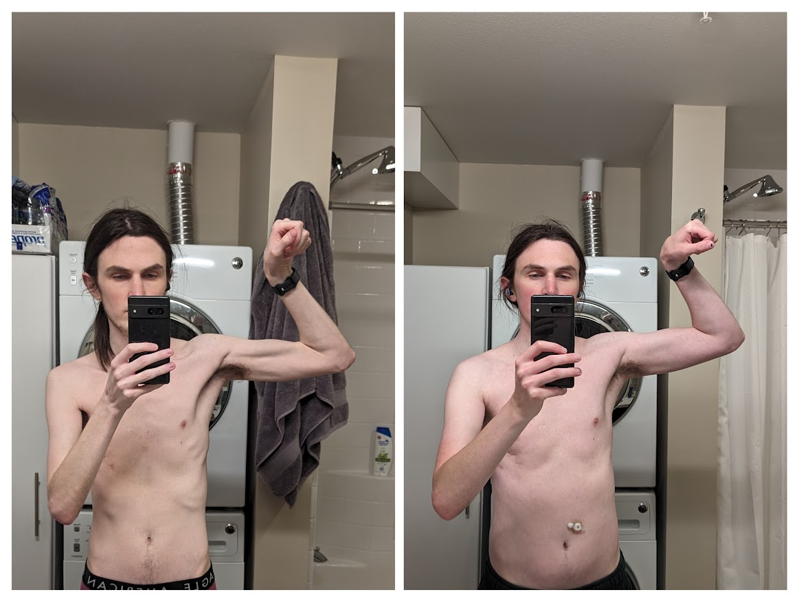 A bit over a year ago I decided enough was enough and that even if it took getting a feeding tube I’d become a normal weight. I saw 130lbs (~60kg) as an unachievable mountain that could never be summited. However, after getting a permanent feeding (PEG) tube placed and pushing myself to eat more and more, I eventually gained 35 pounds in a year!